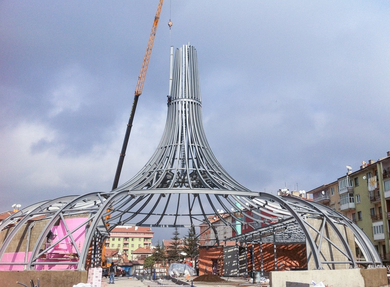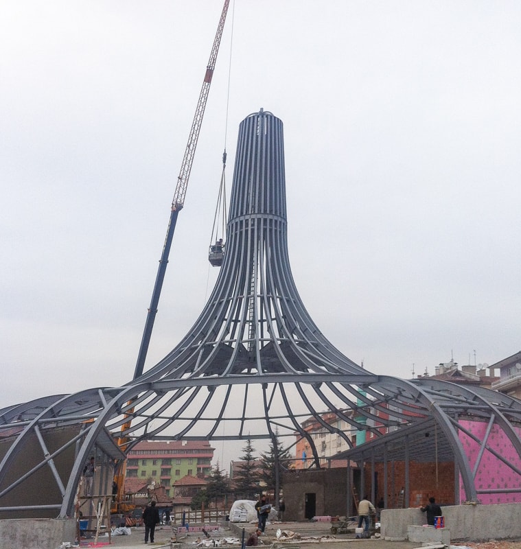 60 m yüksekliğinde anıtsal çelik yapı dışı komple paslanmaz kaplama